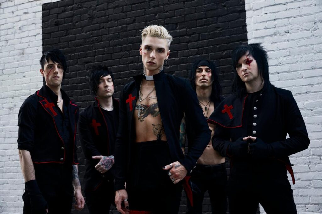 L to R: Lonny Eagleton (Bass), Jake Pitts (Guitars), Andy Biersack (Vocals), Christian Coma (Drums), Jinxx (Guitars)