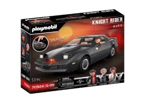 “Knight Rider, a shadowy flight into the dangerous world of a man who does not exist. Michael Knight, a young loner on a crusade to champion the cause of the innocent, the helpless, the powerless, in a world of criminals who operate above the law. “Playmobil adds yet another classic vehicle/figure set to their ever-growing retro line of toys with the addition of everyone’s favorite talking super car “Knight Rider”. Joining the ranks of previously released vehicles and figures from such classic 80’s films as “Back to the Future “and “Ghostbusters” to television series such as “Star Trek” and “The A-Team”, K.I.T.T. and his dapper navigator Michael are right at home.