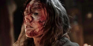 Samara Weaving plays the titular Azrael, who roams the woods dodging mud covered looking creatures with disfigured twitching torsos and milky zombie eyes, and other humans looking to sacrifice her to those previously described creatures. All the humans we encounter, except for one, have removed their vocal cords, leaving a cross as a scar over their throat. You see, this film takes place after the Christian rapture, the supposedly end-of-times day where all of God’s believers are taken to Heaven before good and evil lay waste to the Earth in battle. So, as the movie goes, you automatically know nothing is off the table in terms of supernatural shenanigans, morality, and what happens to the pregnant villain of the story. That being said, nothing is officially known.