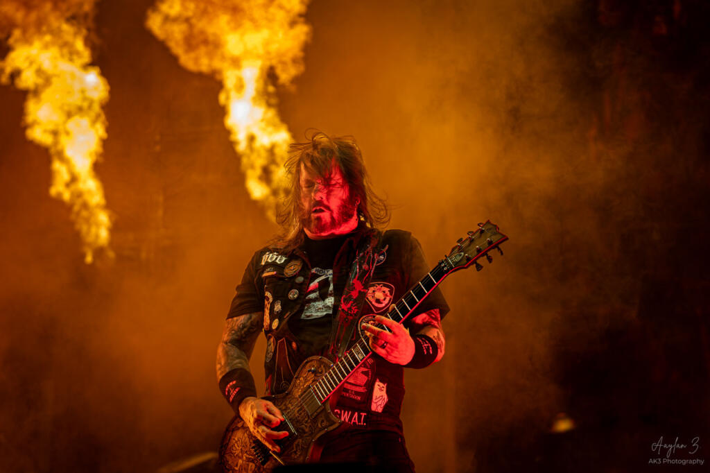Turning 40 this year, Hell Awaits was performed with more ferocity than its studio version I believe. As Araya proved he could still scream with the demonic speed that built Slayer’s legacy. While Gary Holt rips heralding solo’s, at one point one handed, as flames erupt behind him. 213 from the album Divine Intervention followed, before taking fans back to the 1980s with Slayer’s classic thrash sound with Postmortem.