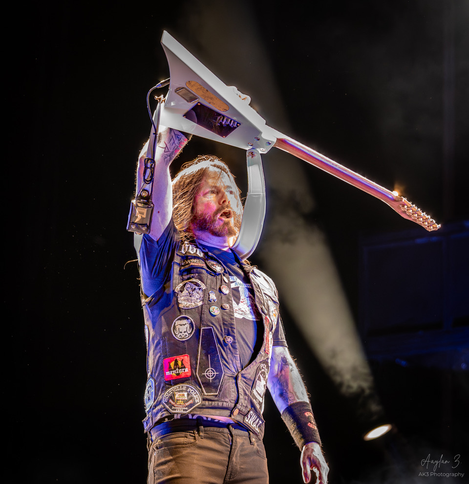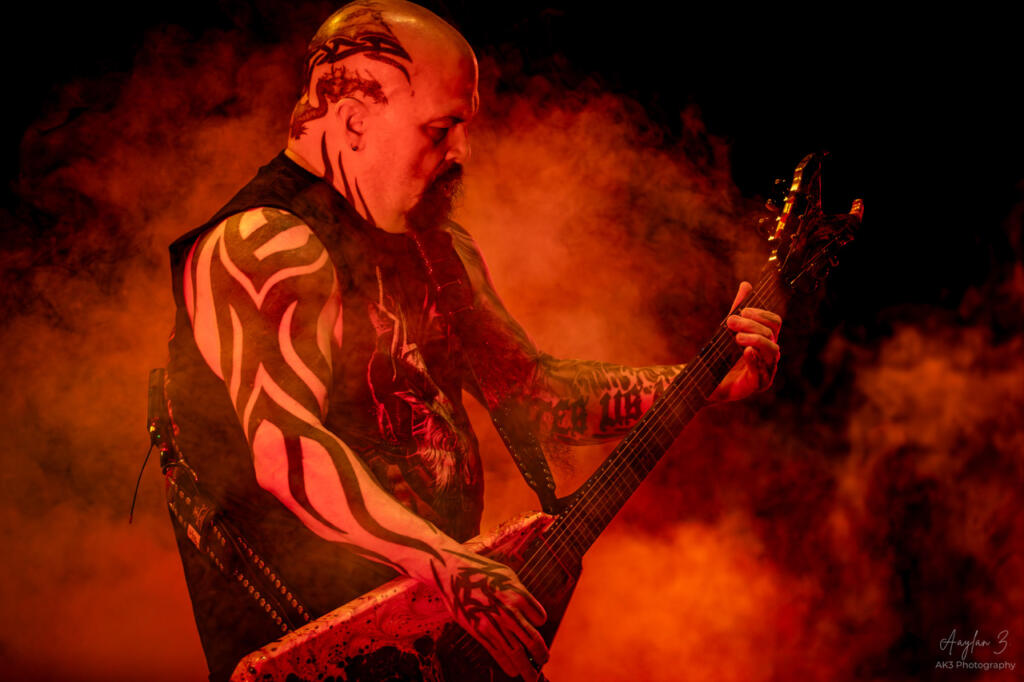 The venue fell silent again as inverted crosses started to burn. Bostaph produced the thunderous bass and rolls while Holt and King unleashed piercing guitar cries before the legendary riff echoed between them for Reign in Blood.  Flames burst from the set as the crowd chanted the infamous lyrics along with the band. King transitioned everyone seamlessly into Black Magic. A song I believe he played better than the original studio version. You could hear the years of experience he has gained playing that song. Slayer