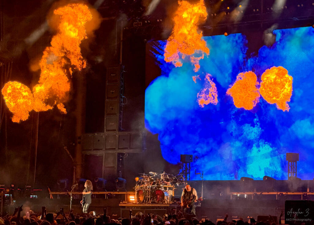 The crowd would need for the consistent onslaught of fast paced head banging brought by the songs War Ensemble, Chemical Warfare, and Reborn. For me, one of Bostaph’s best moments can be heard through the complex transitions in Chemical Warfare. The pace shifted after Reborn to the slower chugs of Mandatory Suicide. Born of Fire followed which lit up the stage with an amazing pyrotechnic display.