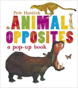 Ranging from a slow snail to fast cheetah, a heavy hippo to light butterfly, a smooth frog to prickly porcupine, those are just some of the examples given to teach contrast to kids. Author Petr Horácek also did the illustration to this brightly colored pop-up book and it makes this book a real visual treat. It also makes it very interactive as well with the flaps, pop-ups etc. I recommend this for not only fun but also learning value.