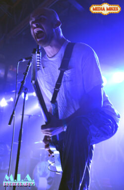 As a white banner projecting of a large burning fireplace dropped from the ceiling and Christmas music began to play through the PA the anticipation level jumped threefold as what has become the marker signaling for the evenings hosts Every Time I Die to take the stage. As a dangerous windstorm swirled outside and synthetic snow began dropping from the ceiling the band burst on to the stage with the song “Roman Holiday”. The band appeared as though they were shot of a cannon as the opening number set a solid foundation for tracks like “A Colossal Wreck”, “Post-Boredom” and “The New Black”. The set features a couple new tracks as both “Desperate Pleasures” and “People Verses” from the newly released “Radical” album made their way into the set for the first time fitting perfectly amongst more seasoned ETID tracks like “We’rewolf”, “Decayin’ With the Boys” and “Map Change”. Despite internal tensions within the band being reported recently the members of Every Time I Die showed they are consummate professionals at the top of their game as the band once again delivering to the sold-out Buffalo crowd.