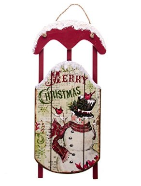 Official Product Description: Hang our charming Snowman Wood Sleigh Wall decor anywhere in your home for an instant splash of holiday spirit and Christmas cheer! This 17 x 6 Cracker Barrel exclusive features fun, collage-style painted snowman art, bright red color and a dusting of artificial snow for the perfect winter touch. This indoor wall decoration is sure to create a jolly look all season long!